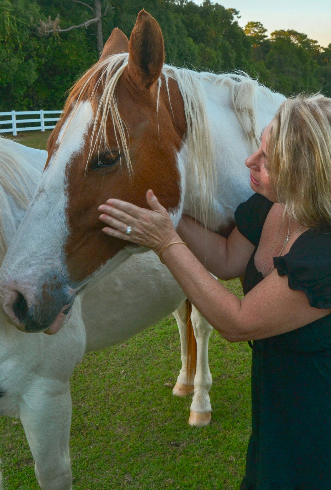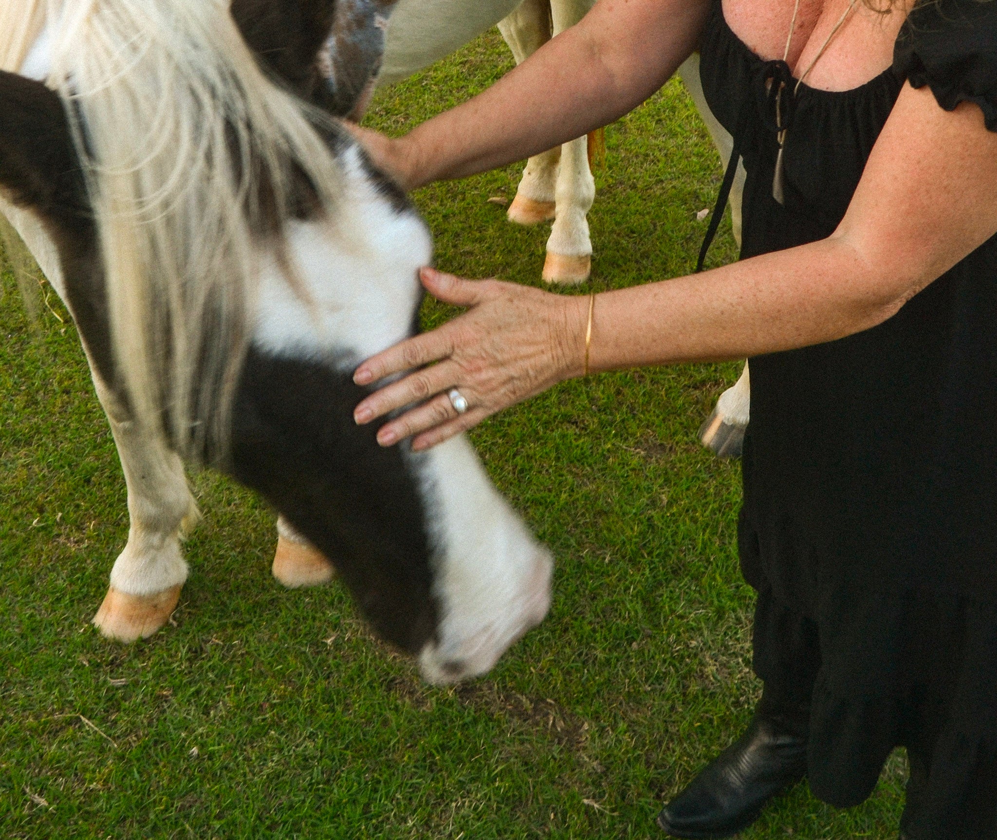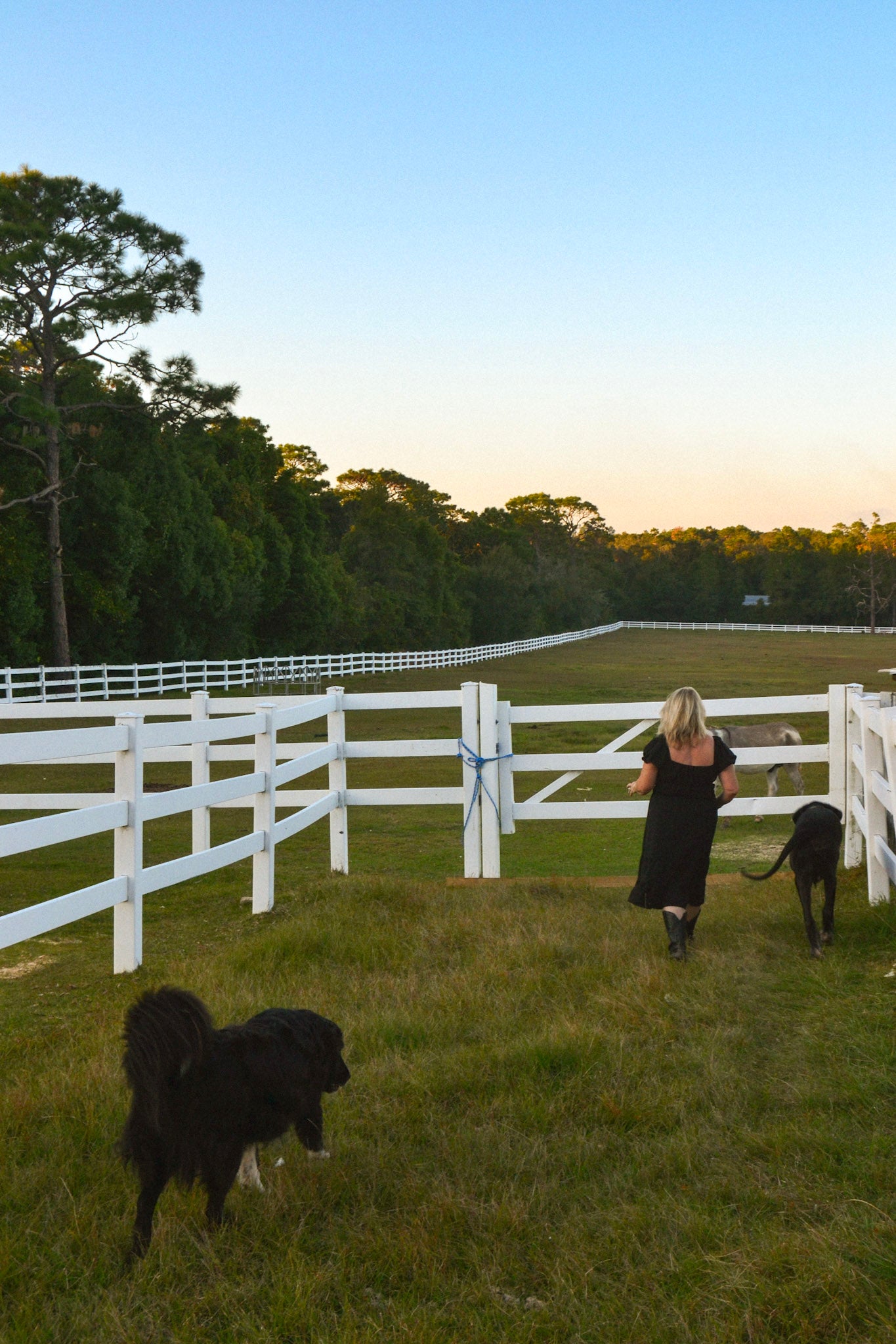 Being from Tennessee, she’s always been drawn to country life. Since I was little, she told me of her dream to have horses one day. When retirement and empty nesting came into view, she found the most idyllic property in rural Alabama—a place where she could finally live that dream. Today, she has over 40 animals that she considers her pets. She rescues horses and donkeys, tends to her chickens, gathers eggs in the morning, and spends her days surrounded by her furry friends, open fields, and quiet.