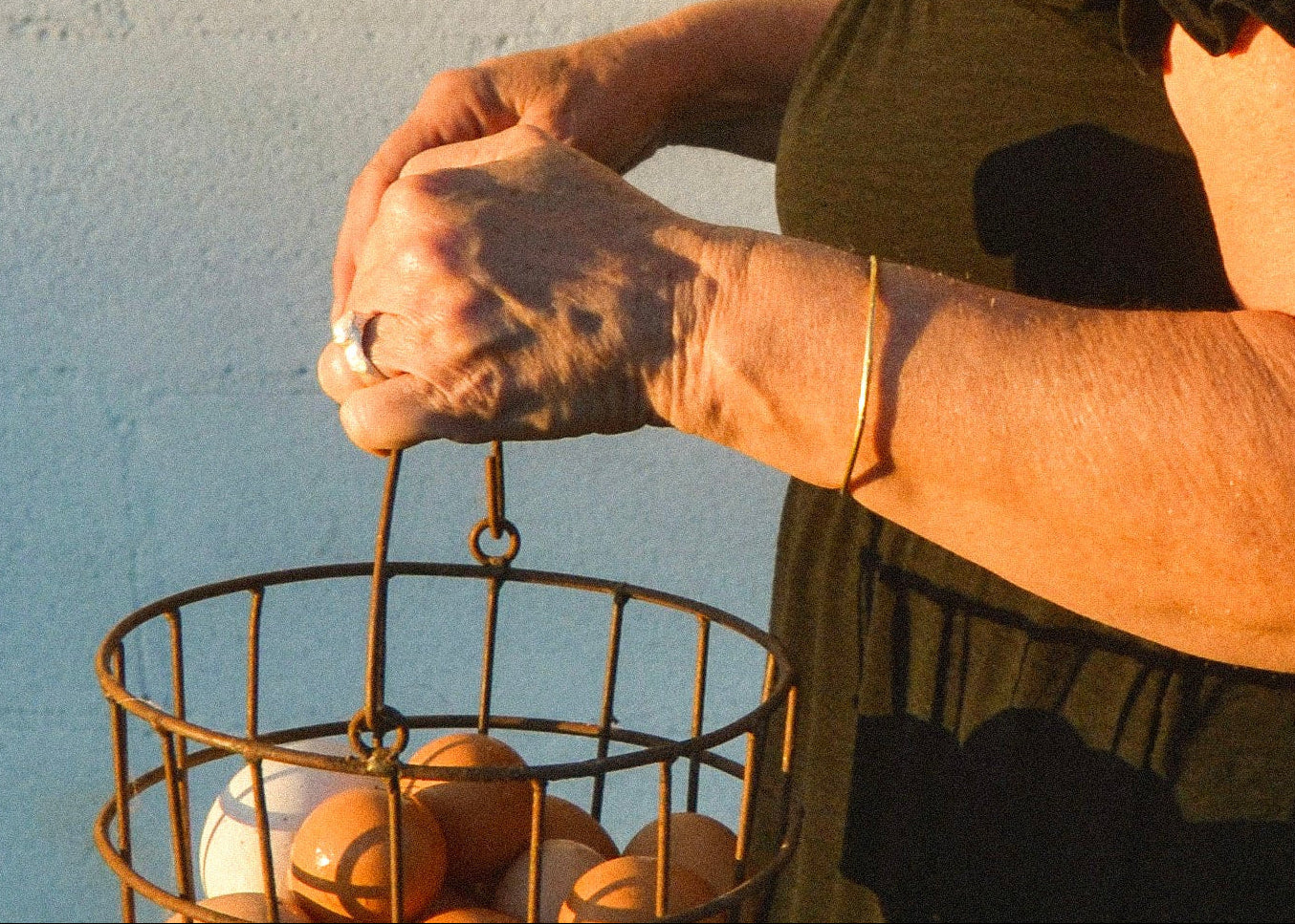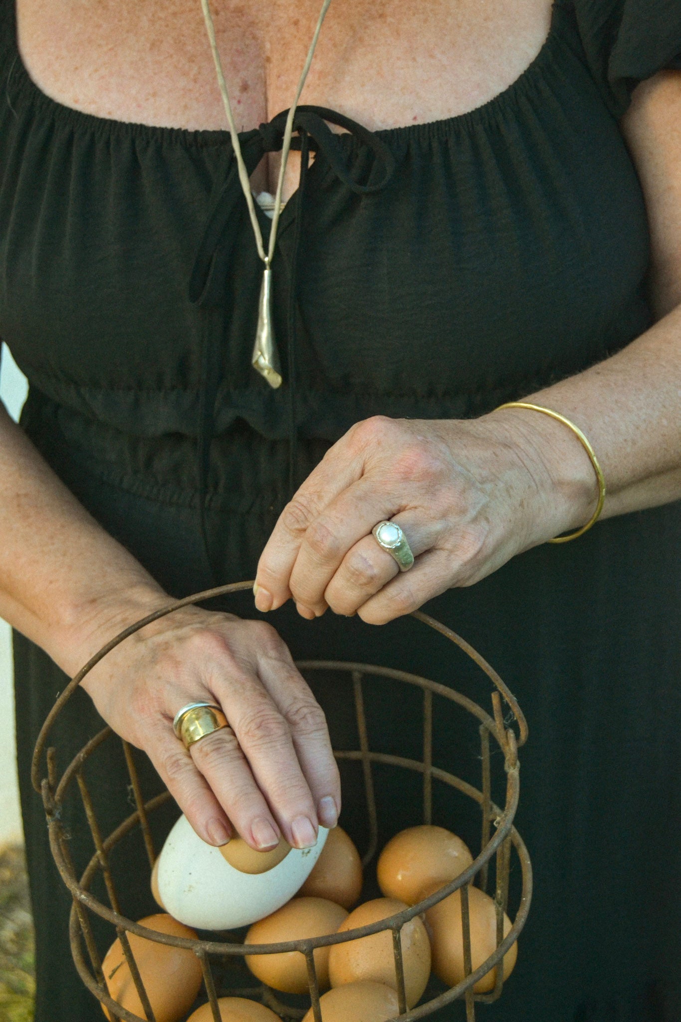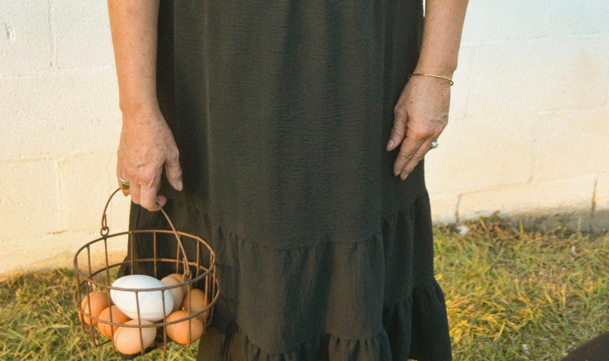 Being from Tennessee, she’s always been drawn to country life. Since I was little, she told me of her dream to have horses one day. When retirement and empty nesting came into view, she found the most idyllic property in rural Alabama—a place where she could finally live that dream. Today, she has over 40 animals that she considers her pets. She rescues horses and donkeys, tends to her chickens, gathers eggs in the morning, and spends her days surrounded by her furry friends, open fields, and quiet.