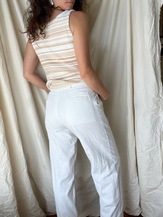 Vintage Linen Blend White Pants
