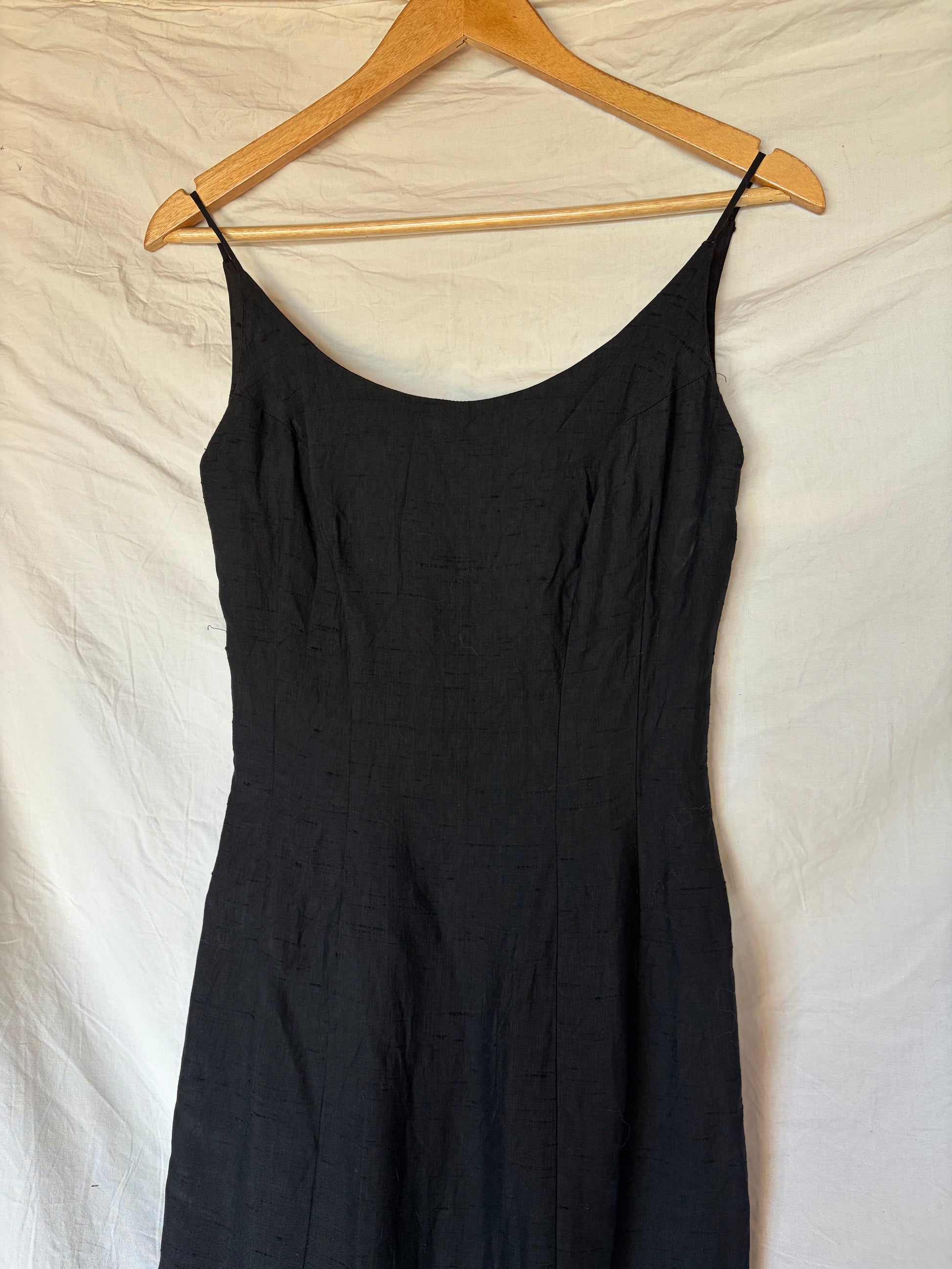 A lovely, beautifully tailored black silk midi dress with union made labels.